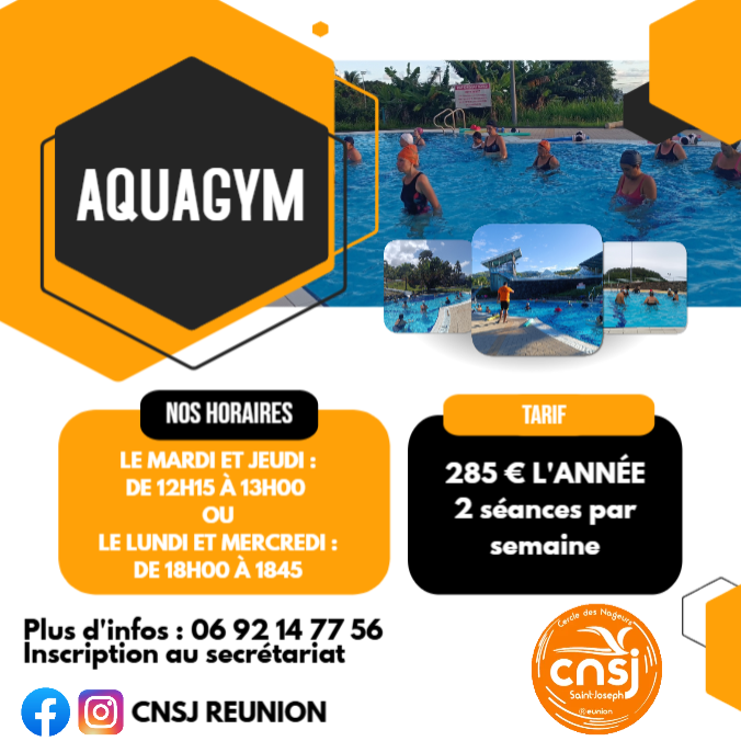 Viens à l'AQUAGYM ! Ces séances te permetteront de renforcer tes muscles, améliorer ta souplesse et stimuler ta circulation, le tout sans impact.