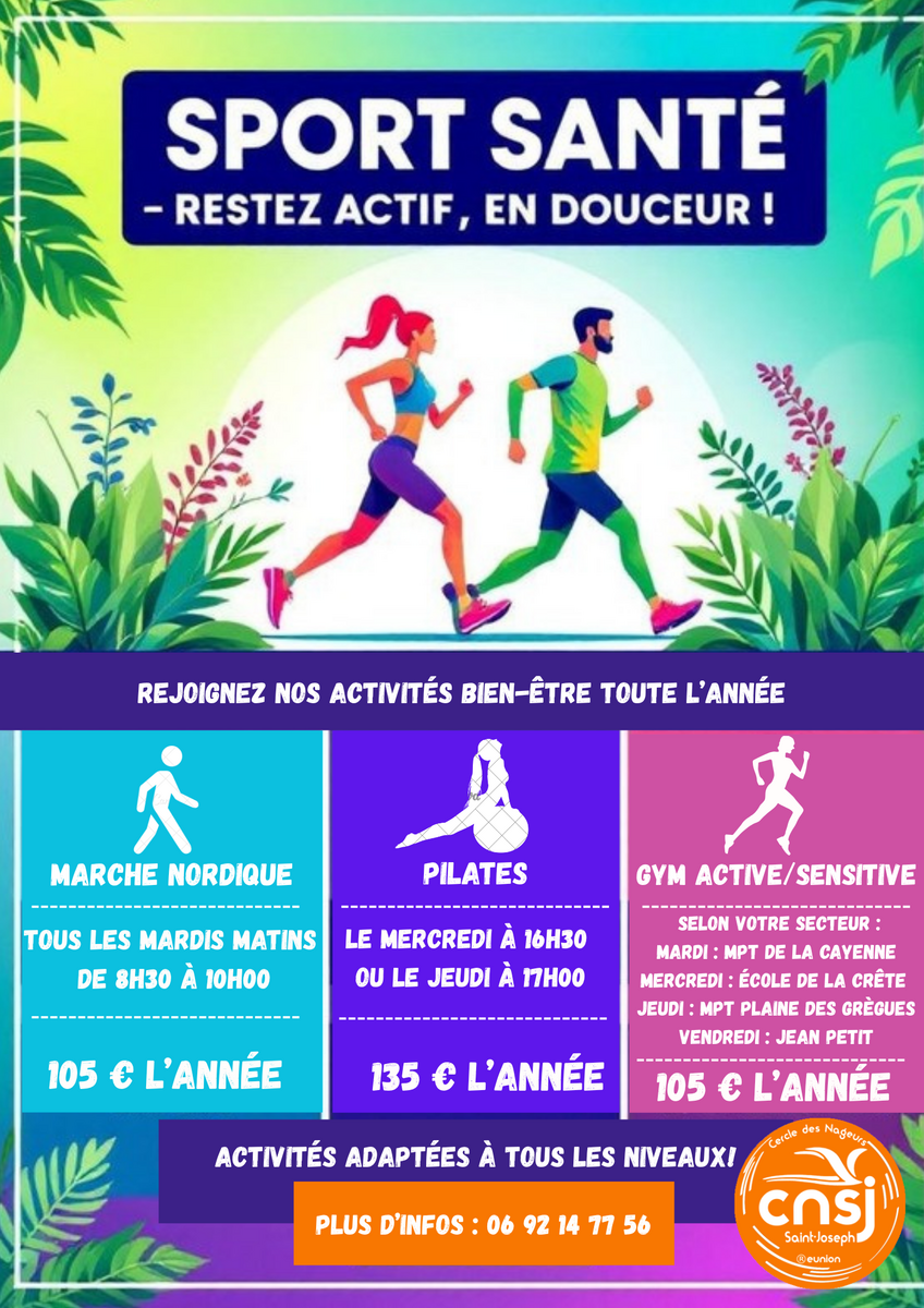 Sport Santé te propose de la marche nordique, mais aussi du pilates et même de la Gym Active/Sensitive !